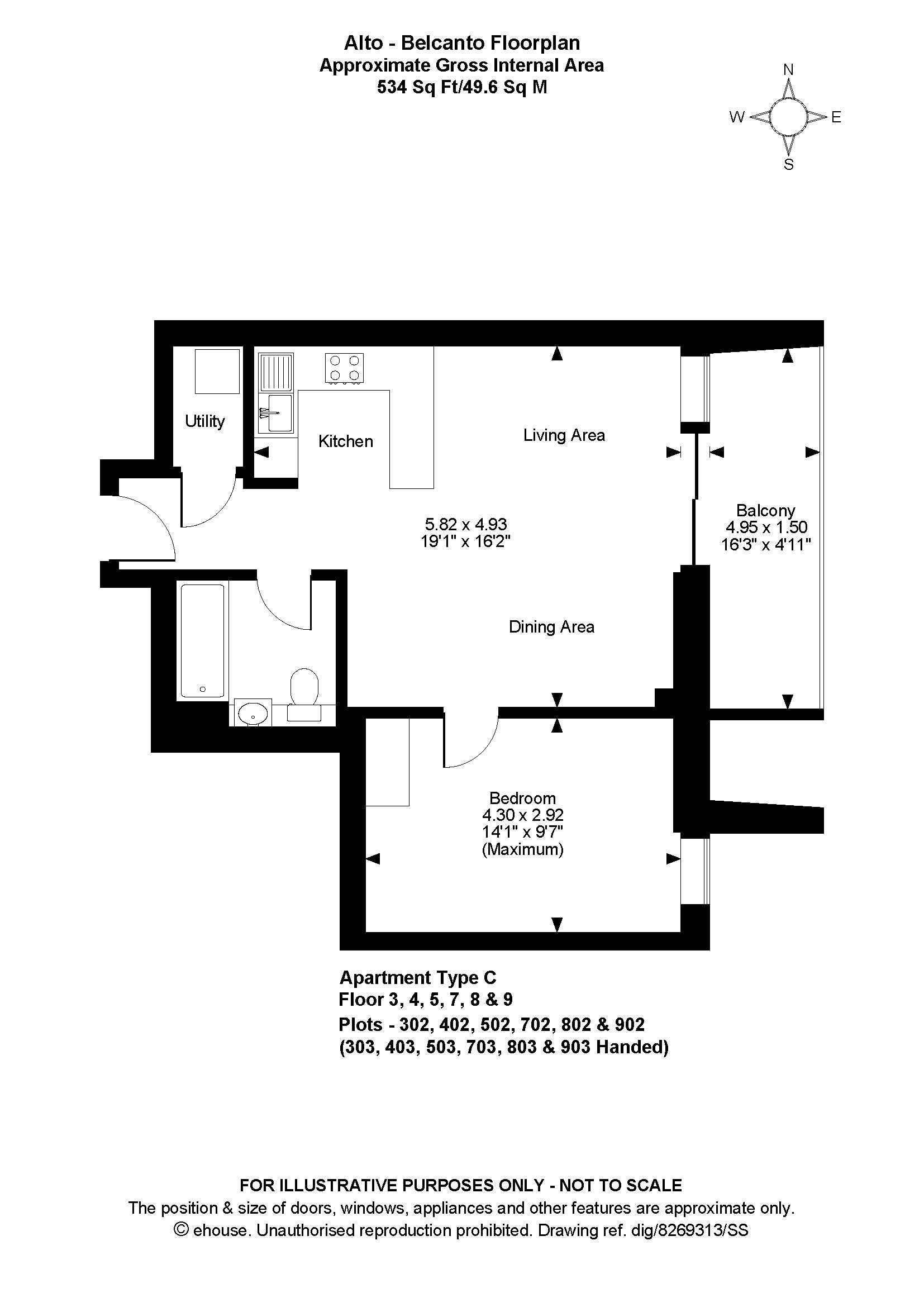 • 534 sq.ft / 49.6 sq.m