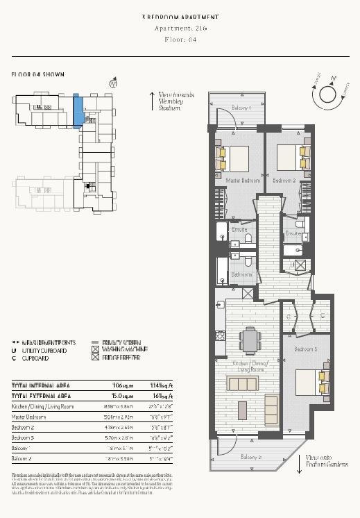 Wembley Park Residential are pleased to present this THREE BED/THREE BATH APARTMENT on the fourth floor located within GRAND UNION. The apartment comes complete with high quality integrated appliances, TWO BALCONIES, access to a 24 hour concierge as well as a SECURE UNDERGROUND PARKING space.