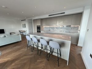 15TH FLOOR, 1226 SQFT PENTHOUSE, THREE PRIVATE BALCONIES, 24 HOUR CONCIERGE & RESIDENT GYM/SPA, SECURE UNDERGROUND PARKING** Higher specification than the rest of the development – marble kitchen/bathrooms, integrated air conditioning, coffee machine and wine cooler. Available Sept 2025