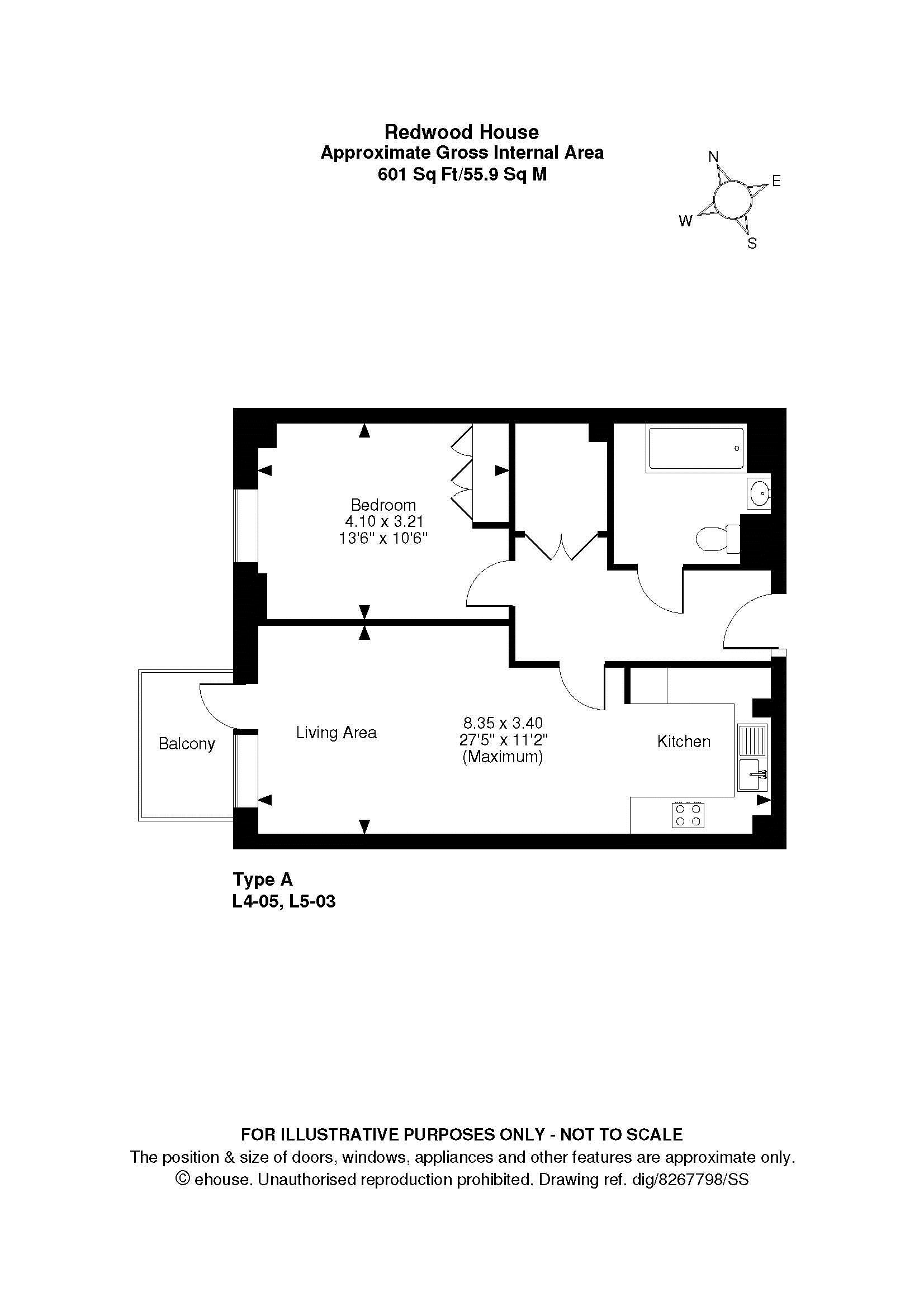• 601 Sq Ft / 55.9 Sq Mt