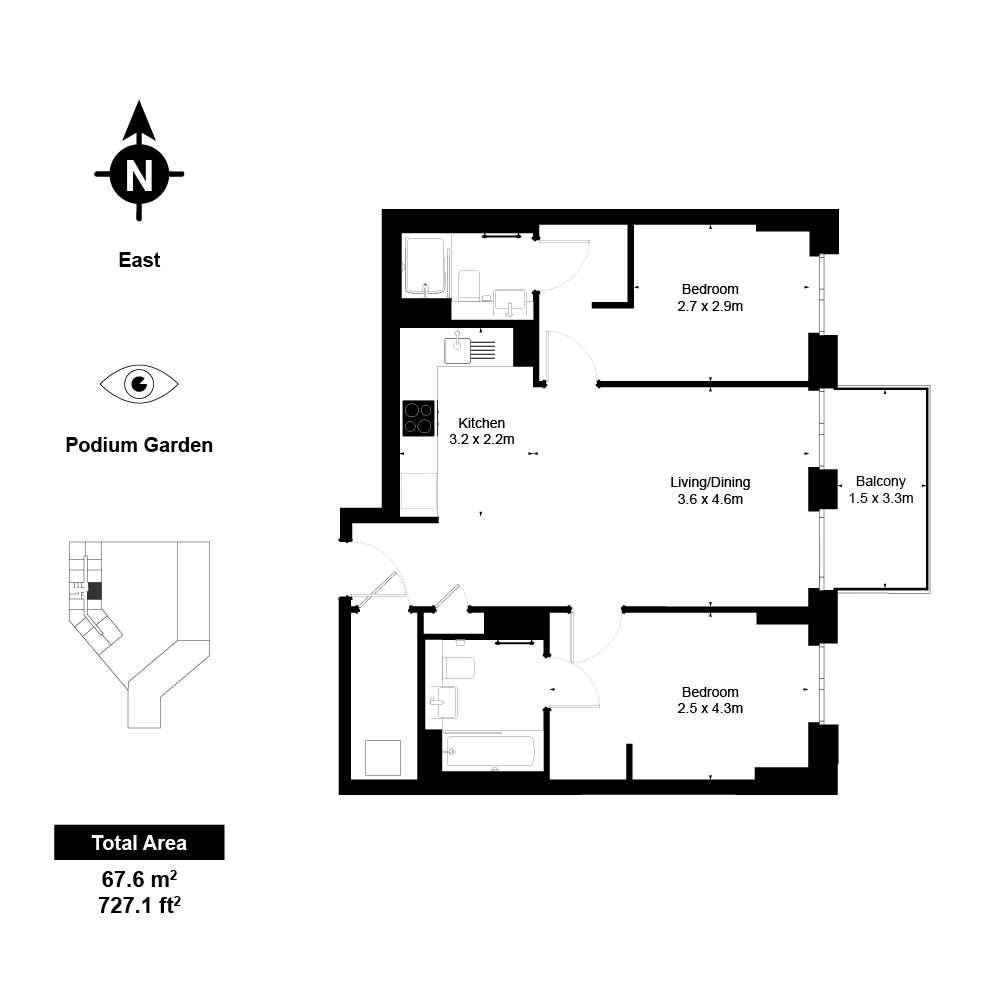 • 67.6 SqM / 727.1 Sqft
