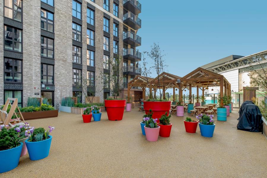 The Robinson offers 31 DMR apartments across three buildings. The development is set around an acre of landscaped gardens with a multitude of resident social spaces inspired by Britishpop culture. This includes three roof terraces, podium garden with a BBQ area, kids play area and pet friendly dog zone. Resident lounge with London Skyline views, meeting rooms and various work from home spaces with free Wi-Fi. All apartments have their own private balcony.